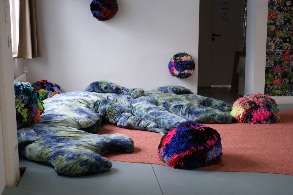 The two rooms of the project space sign,CIAT are transformed into a cozy but also eerie “nature” – a space open and inviting. Visitors can rest there, focus on their sensory awareness and engage with the thoughts and impulses that arise. The installation functions as a retreat, a site for imagination and exchange that visitors can actively shape. Textile sculptures invite reclining, ceramic and straw-metal sculptures can be touched and used to create sound, and plant sculptures can be experienced through touch and scent. Light and sound conditions are regulated, allowing for a low sensory experience of the space.